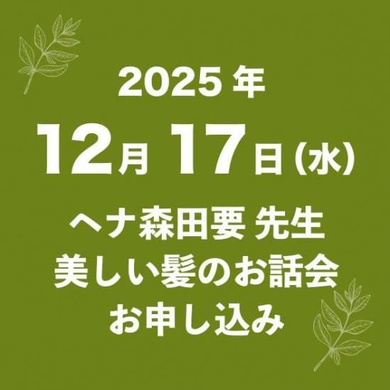 <ヘナを日本で広めた第一人者 森田要先生のオーガニックヘナと美しい髪のためのお話会>青山のヘアサロン「Kamidoko」オーナー森田要さんをお招きして、「オーガニックヘナと美しい髪のためのワークショップ」を開催します。